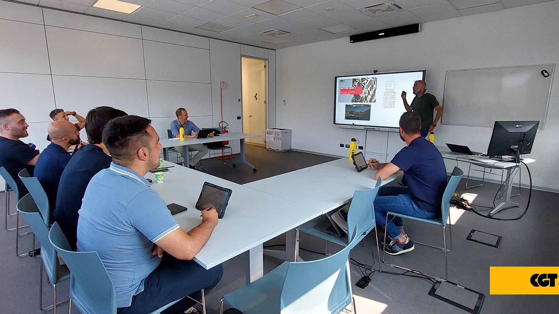 After evaluating several potential options, CGT chose Mago as the best-suited solution. Its interactive screens, combined with the Mago Workspace App, offer advanced features such as interaction with 3D content and annotations on PDFs, applications, and multimedia files. Adopting Mago was incredibly fast. The Mago launcher on the 86” interactive screen and the Mago Workspace are user-friendly and intuitive, making the solution indispensable for both trainers and students. High-quality audio/visual systems and microphone system enable remote participants to interact with the trainer and people in attendance as if they were all in the same classroom.