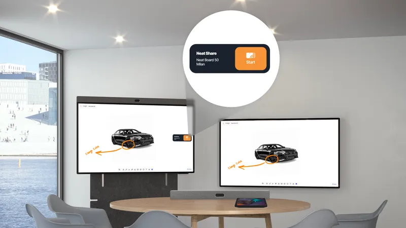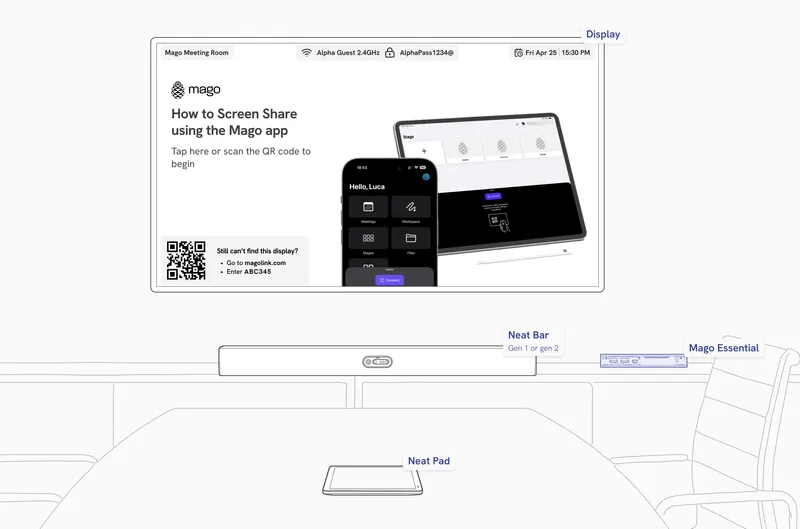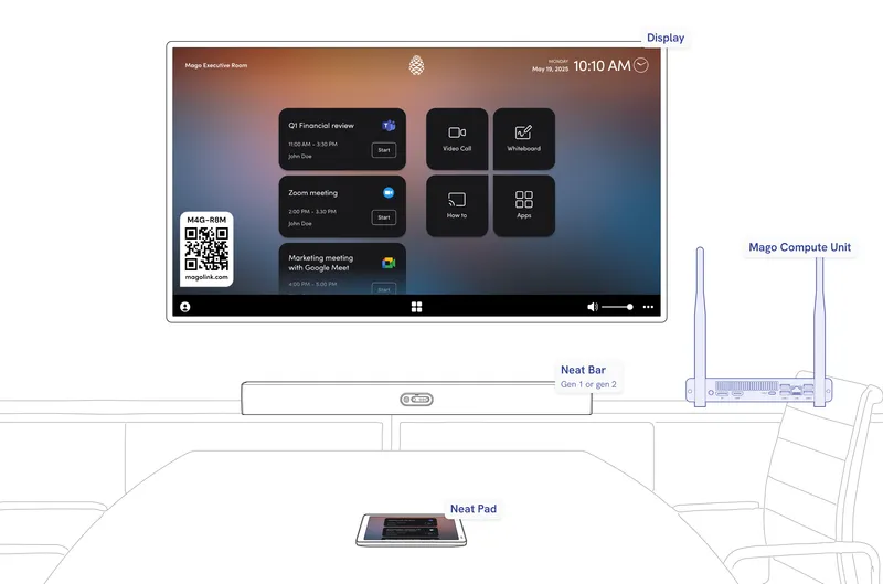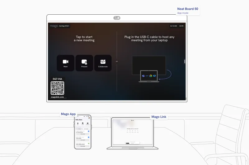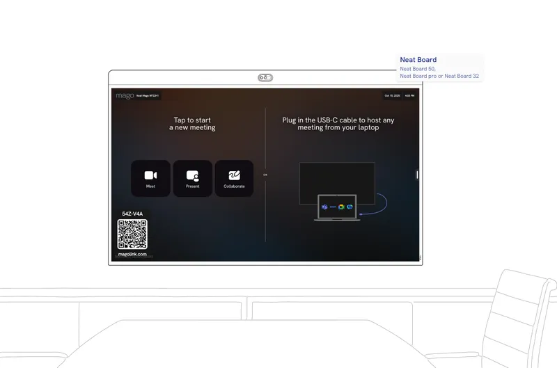 Use your Neat Board Pro, Neat Frame or Neat Board 50 as a Mago Companion Mode display to your existing Microsoft Teams Room or Zoom Room setup. With Neat Share, you can instantly ingest content or control the board directly from your Neat room, no extra cables, no complex pairing.
